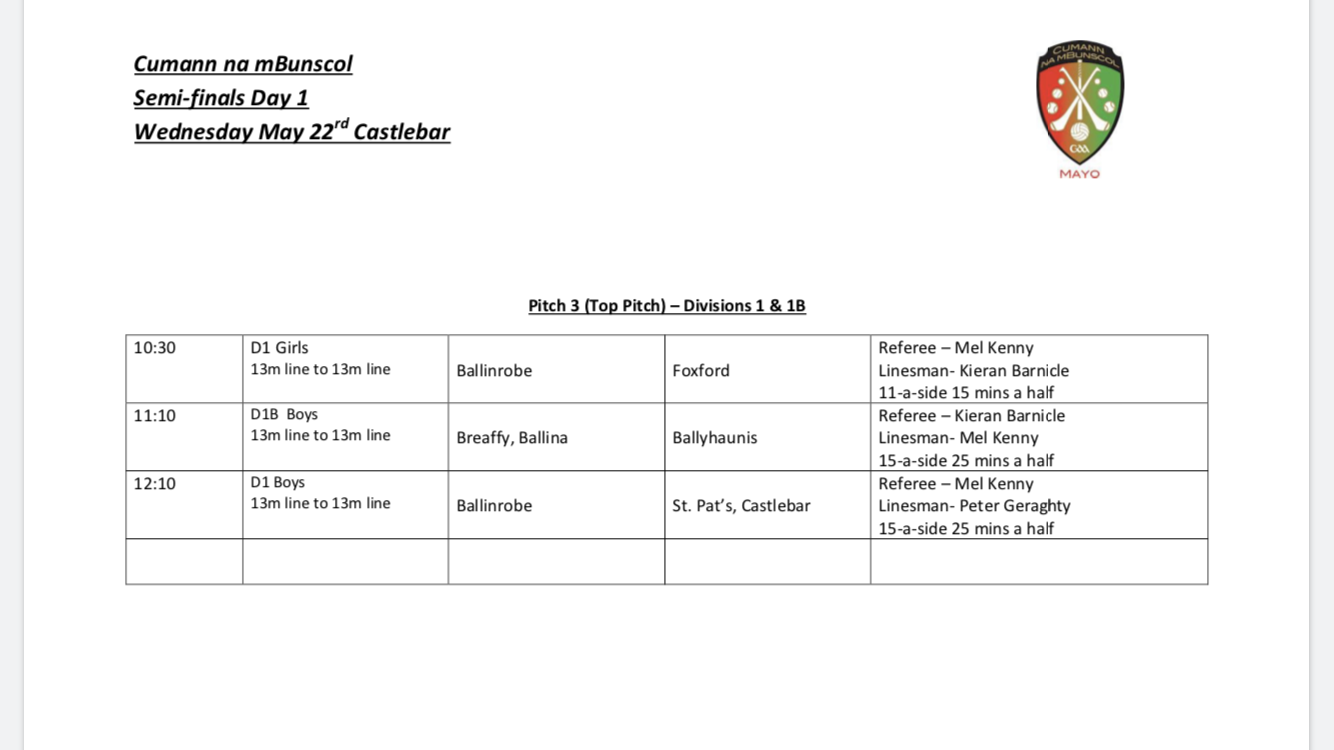 Runaí, Cumann na mBunscol Mhaigh Eo